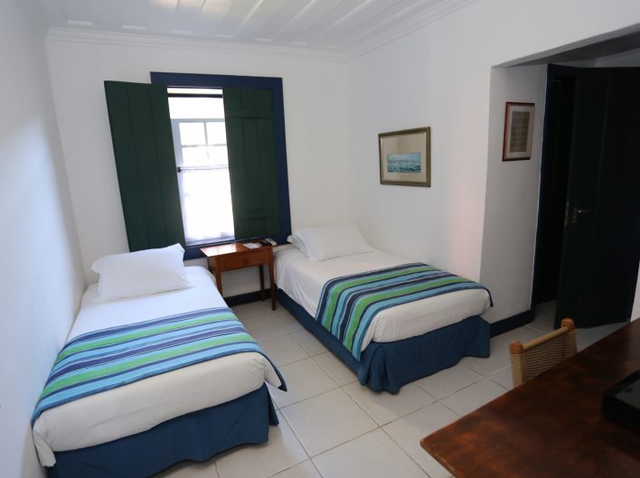 Apartamentos localizados no primeiro ou segundo andar da pousada, com acesso por escada. Possuem 01 cama box de casal e 02 camas box de solteiro, 01 banheiro comum aos dois ambientes, TV LCD 32″ com Sky HD, cofre eletrônico, telefone, secador de cabelos, frigobar, ar condicionado split, armário aberto, desumidificador e wi-fi.